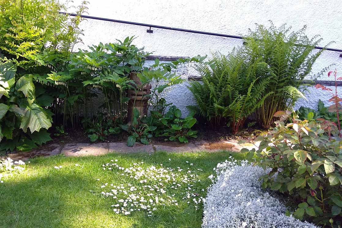 and things are gradually slowing down in the garden. When I first started the stumpery area, I filled in a lot of spaces with ferns (soft shield ferns I think) with the intention of replacing some of them later with different plants. Some of these ferns are huge now and are really outgrowing the space or hiding other plants, and not just in the stumpery. So, at the weekend, my husband dug out one of them from beside the ramp and replaced it with Persicaria amplex Blackfield – I love the colour of the flowers. I just hope it isn’t going to become a thug. I have another 5 or 6 of the same ferns so I will ask hubby to divide a couple of them so at least they will be smaller, and completely dig up the rest so I can buy some new plants for the spaces. He also dug out the Rosa rugosa which has been a big disappointment. It has been there for 3 years and only produced 3 roses! All the rest of the growth has been hight and suckers. I would really like another rose there but it is just too shady, unless I can persuade our next lot of neighbours to chop down their rather large shrubs and trees. I have acquired a bench to put in the dry shady area at the back of the garden but as not a lot will grow in deep dry shade so I will have to think about what else to put around the bench. The corner wall is in need of repair but again I will have to wait and speak to our new neighbours. The trouble with that is that the actual owners are planning on splitting that house and garden into two, but they haven’t actually started any work yet so I may have a heck of a long wait for that work to be done and the house sold.